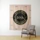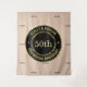Modern and elegant beige linen texture with a gold- black circle. 50th wedding anniversary