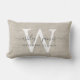 Beige Linen White Monogram Wedding Keepsake Lumbar Pillow