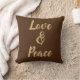 A cute beige color with a brown text template saying: Love & Peace in three lines. Click personalize to change the words to other short words or names, or buy it as is.
