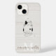 Do you love to change your iPhone cover as often as we do? Check out this Beige Minimal Modern Initial Monogram Name iPhone 14 Case featuring a doodle yoga cat on a light wood background. You can personalize it very easily with your own name and monogram and even your own picture.