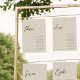 Beige Modern Whimsical Script Wedding Table Number Seating Charts Card with Guest Names. All the texts are pre-arranged for you to personalize easily and quickly with your own details.