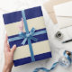 Beige, Navy Blue XL Stripes Pattern V Wrapping Paper