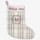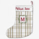 Beige Plaid Evergreen Wreath Customizable Monogram Small Christmas Stocking