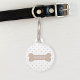 Beige small polka dots pattern together with a beige dog bone silhouette on the front. On the bone there is a personalizable text are for the name of the pet. The back has a personalizable text area for a phone number.