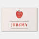 Created to coordinate with the "Wavy Apple" preschool graduation announcement collection, this modern, charming graduation yard sign features a sweet, halftone apple illustration with a "Class of (Year)" message overlay, and space for the name of your child and their school. The text and design is placed over a solid beige background. The back of the sign features a coordinating yellow and beige wavy pattern.