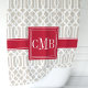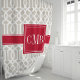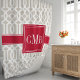 Add a touch of elegance to your bathroom with this sophisticated shower curtain. The intricate beige trellis pattern creates a mesmerizing backdrop for the personalized monogram, showcased within a bold red square. Crafted from durable, water-resistant fabric, this shower curtain adds a touch of modern charm and personalized flair to your space.