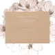 Beige colored mailing envelope for your wedding invitations and features your name and address printed on back flap in a modern script style. Personalize your envelope by editing and replacing name and address with your own. Edit further to change font style or color. Select your envelope size that fits your invitation.