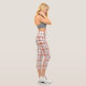 Beige, red, black and white tartan plaid, Scottish pattern fabric swatch.