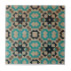 Unique decorative tile design featuring a seamless pattern made of geometric shapes in teal and black on a beige stone-look textured background.