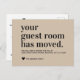 Your Guest Room Has Moved Moving Announcement featuring a modern script and font typography and a heart.