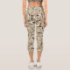 Beige Unique Black and White Pattern Capri Leggings