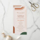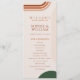 Modern boho, double-sided, program cards with arch shapes. The main color of the program card is beige, with arch shapes in dark green, rust, and terracotta colors.