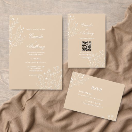 Beige White Corner Floral Boho Wedding Napkin