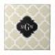 Beige, White Moroccan #5 Black 3 Initial Monogram Ceramic Tile
