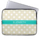 Beige White Polka Dots #2 Teal Monogram Laptop Sleeve