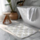 Elevate your bathroom decor with our Glam Beige & White Quatrefoil bath mat, featuring a sparkling pattern that adds a touch of sophistication to your space.