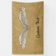 Wide open beige wings illustration. Grunge beige background. Custom text.