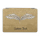 Wide open beige wings illustration. Grunge beige background. Custom text.