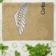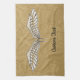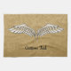 Wide open beige wings illustration. Grunge beige background. Custom text.