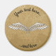 Wide open beige wings illustration. Grunge beige background. Top and bottom custom text.