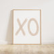 A chalky brush style XO in neutral beige, perfect baby nursery decor, kids bedroom wall art and childrens playroom spaces.