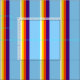 This design features stripes colored beige, yellow, red, indigo, and light sky blue.