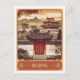 a captivating and nostalgic depiction of Beijing, China, renowned for its rich history and iconic landmarks. The design captures the grandeur of the Forbidden City, the impressive Temple of Heaven, and the ancient city walls, set against the backdrop of bustling streets and traditional architecture. Rendered in a vintage style, the artwork evokes the deep cultural heritage and vibrant spirit of Beijing, inviting viewers to explore its historical treasures and modern charm.