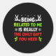Being Related To Me Funny Christmas Shirts Women M Classic Round Sticker