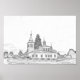 Belarus Parečča /Porechye Cityscape City View Architecture Orthodox Church View Monochrome Sketch Poster to add to your travel memorabilia collection. A cool present / gift idea for all who love custom design items, positive vibes, nature, traveling, is of a Belarusian Descent etc.