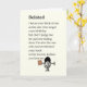 A funny belated happy birthday card from her, featuring a bad poem and illustrations, about the other things he forgot. Our character, tillie, is smiling and holding a book and a twenty-dollar bill.