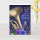 The floral arrangement and metallic instrument give the card an elegant belated-celebration feel — ideal for late wishes sent with beauty, sound, and heart. A thoughtful card for those who love brass music, floral visuals, bold colour and stage presence.
