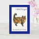 A lighthearted Belated Birthday Card with a longhaired brown tabby cat looking indignant at the idea that s/he might have forgotten something, from a handpainted illustration by Judy Adamson. Could be customized for other date-specific occasions by changing the inside wording.