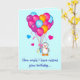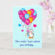 This belated birthday card features a penguin and hearts. For matching items type "penguincornerstore balloons" into the Zazzle search bar.
