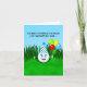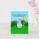 This funny cartoon golf ball party hat on, balloons in tow is battling through the rough to deliver your belated birthday card. Perfect for golfers who love the game and a good laugh!