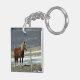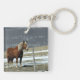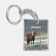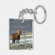Belgian Draft Horse In Paddock, Keychain. Digital Art. Single Belgian horse in winter paddock behind barbed wire fence. Fits well in farm or ranch decor. Customizable. Edit the name to your needs, or remove it entirely.