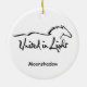 Lightweight, smooth, pure white ornament with nice sheen. Perfect size to be seen from across the room ... and to attract closer inspection! Price was great for ordering enough for the whole family! Clear, bold black design just as requested. Matches the order exactly. Just so nice!