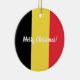 Personalized Belgian flag Christmas tree ornament. Custom Merry X-mas Holiday decorations in round or heart shape. Country flag of Belgium design. Novelty xmas decor for friends, family, kids, co worker, employee, boss, children, wedding couple, newly weds, mom and dad, grandparents, relatives, baby etc. Add your own season's greeting and photo on the back optionally. Elegant script typography template. Gold glittery string included. Create your own keepsake for 1st Christmas together or other occasions.