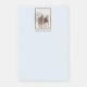 Personalized post-it notes with an outdoorsy photograph featuring a team of 2 belgian draft horses pulling a sleigh. Snowflakes gently falling down with snow covered pine trees in the background. Paper color is light blue.