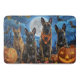 Unleash the spooky spirit with this eerie Halloween design featuring a pack of dogs under a dark, moonlit sky, surrounded by flying bats and glowing pumpkins. Perfect for those who love a touch of frightful fun with their furry friends!
