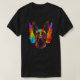 My 11 yo wore adult XL (5’7” 165#). The 8yo is small framed. She wore adult small and tied it in the back. Grandma wore adult large with long sleeve shirt underneath. Tall girl adult medium. Dark haired male adult large. Good quality dark Heather gray, Gildan brand shirt. -it was next up from basic choice and cost about $20 per shirt. Not too thick or thin. Washed and dried well, no major shrinkage. Not see-through. Can wear a bra under it fine. Screen print is just as shown and well done, front and back.