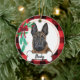Belgian Malinios ornament with red buffalo background and Christmas garland and bow - Art was hand painted by me and made available as this adorable ornament! Add any text (suggested: "I ❤️ my mal" or your sweetie's name)