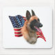 USA! America! Shout your pride with this awesome flag Patriotic background with this AKC dog breed Belgian Malinois in the forefront. Show your pride with this design on a t-shirt, mug, and much, much more!