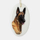 The beautiful and talented Belgian Malinois is highlighted in this headstudy on an ornament.