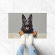 The soft charcoal gray background adds a sleek and modern touch, perfect for contemporary home decor. With extra space at the top and bottom, this design is ideal for personalization—add names, welcome messages, or custom text to create a unique dog-themed doormat or thoughtful gift.