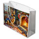 Belgian Shepherd Fireplace with Christmas Lights Large Gift Bag