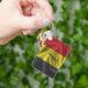 Keychain with the flag of Belgium in wavy fabric style design. This design features the Belgian flag colors and design with a beautiful waving material textured effect. This flag design is a great way to show you are proud to be from Belgium.