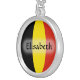 The design for this attractive pendant features a name overlying the Belgian flag, which has been neatly morphed to fit the round shape. The featured name can be changed to any name or text of your choice, creating a personalized gift for someone who loves Belgium.