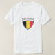 The national flag of Belgium is infused into a shield shape and sat below the country name.