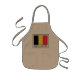 This apron is made with a durable fabric! My grandson LOVES it! The shape provides great coverage to protect clothes from paint spatters, etc. The print quality is excellent! The detailed lines of the dragon drawings are printed in a crisp, clean manner.