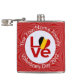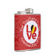 The Belgian LOVE FLAG on a hip flask. The word LOVE is featured in red letters inside a white, fractal circle of squiggly squares. The circle sits on a red, fractal background, also, of squiggly squares. Perfect for a Valentine's Day gift for him. Can be customized for any occasion for your Belgian.
